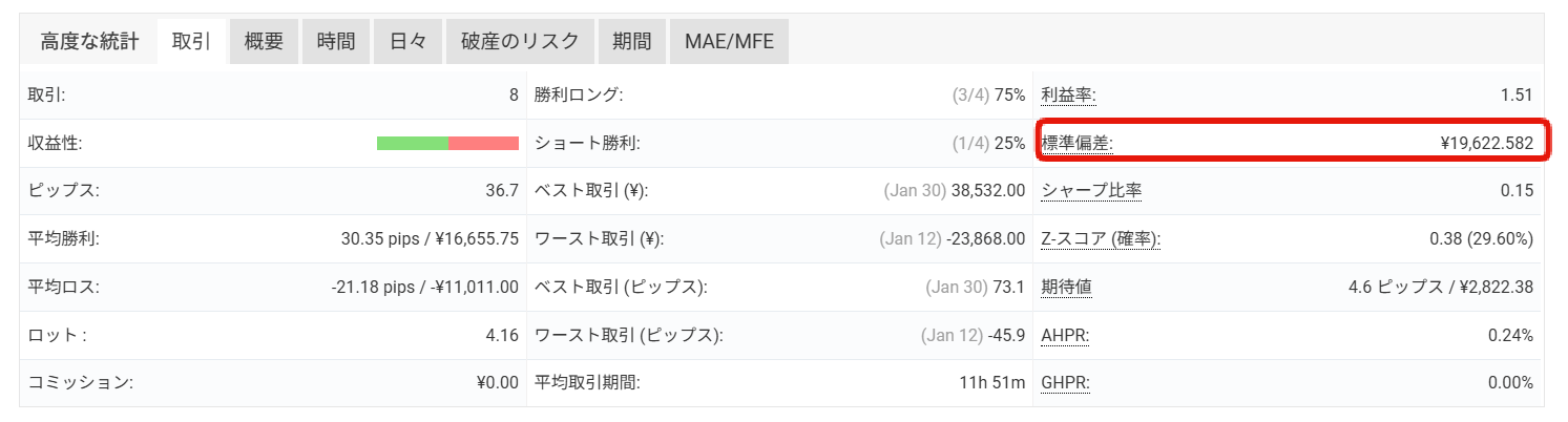 標準偏差?ボリンジャーバンド?みたいな項目ですが、これはつまりこの期間の金額的なリターンみたいです。