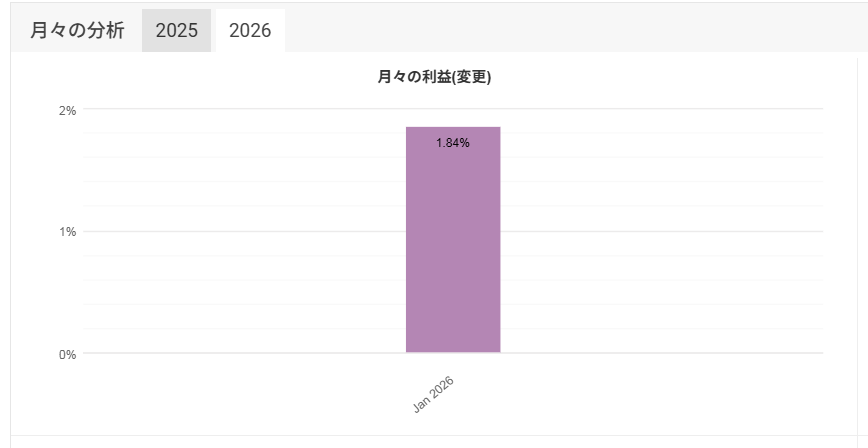 昨年6月からの月間成績を見ると、ちゃんと負けたのは7月だけで、他の月は増えているか、現状維持です。2026年1月もしっかりプラ収支でフィニッシュしました。