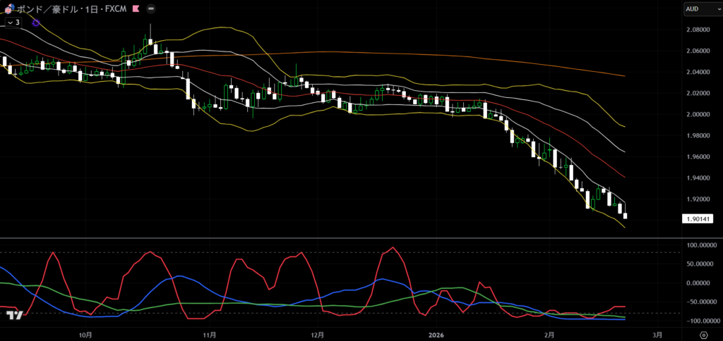 分かりやすく下げるバンドウォーク状態なのに、売り裁量はぜんぜん勝ってない。手動は難しいが、引き続き練習せねば。